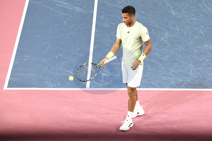 MONTPELLIER, FRANCE - FEBRUARY 1 : Felix AUGER-ALIASSIME (CAN) during the 2nd round of the ATP 250 Open Sud de France tournament vs. Arthur CAZAUX (FRA) in Montpellier, France on February 1st, 2024.