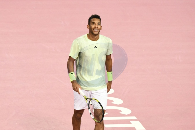 MONTPELLIER, FRANCE - FEBRUARY 1 : Felix AUGER-ALIASSIME (CAN) smile during the 2nd round of the ATP 250 Open Sud de France tournament vs. Arthur CAZAUX (FRA) in Montpellier, France on February 1st, 2024.