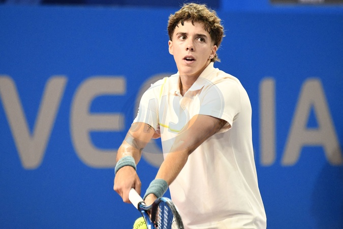 MONTPELLIER, FRANCE - FEBRUARY 1 : Arthur CAZAUX (FRA) during the 2nd round of the ATP 250 Open Sud de France tournament vs. Felix AUGER-ALIASSIME (CAN) in Montpellier, France on February 1st, 2024.