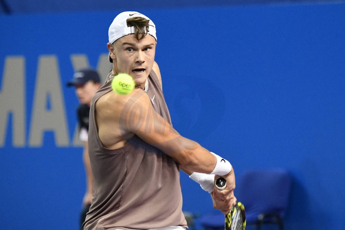 MONTPELLIER, FRANCE - FEBRUARY 1 : Holger RUNE (DEN) during the 2nd round of the ATP 250 Open Sud de France tournament vs. Pablo LLAMAS RUIZ (ESP) in Montpellier, France on February 1st, 2024.