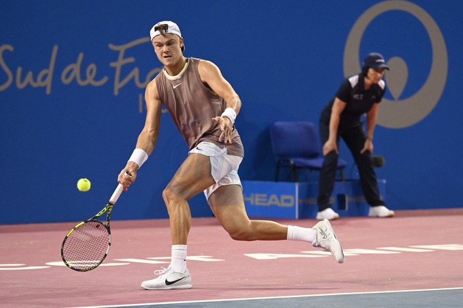 MONTPELLIER, FRANCE - FEBRUARY 1 : Holger RUNE (DEN) during the 2nd round of the ATP 250 Open Sud de France tournament vs. Pablo LLAMAS RUIZ (ESP) in Montpellier, France on February 1st, 2024.