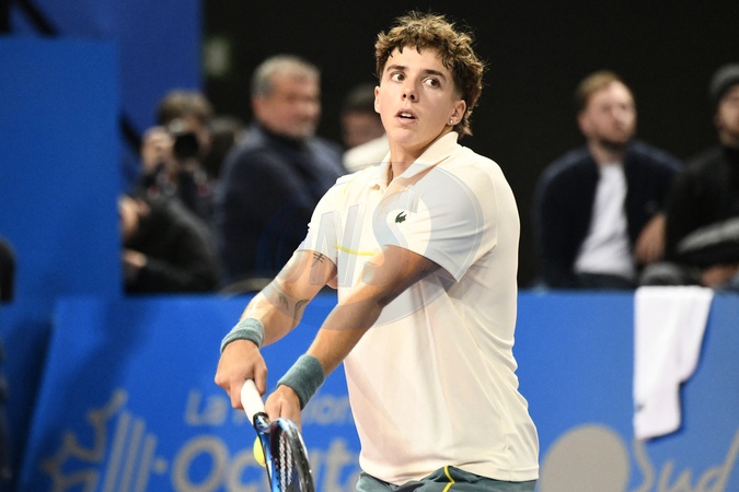 MONTPELLIER, FRANCE - FEBRUARY 1 : Arthur CAZAUX (FRA) during the 2nd round of the ATP 250 Open Sud de France tournament vs. Felix AUGER-ALIASSIME (CAN) in Montpellier, France on February 1st, 2024.