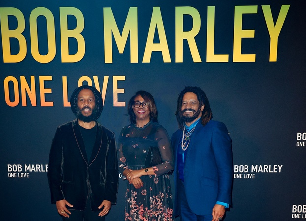 Ziggy Marley, Symone Betton Nayo et Rohan Marley - Première du film "Bob Marley One Love" au Grand Rex à Paris le 1 fevrier 2024. © Coadic Guirec/Bestimage Premiere of the film "Bob Marley One Love” at the Grand Rex in Paris on February 1, 2024.