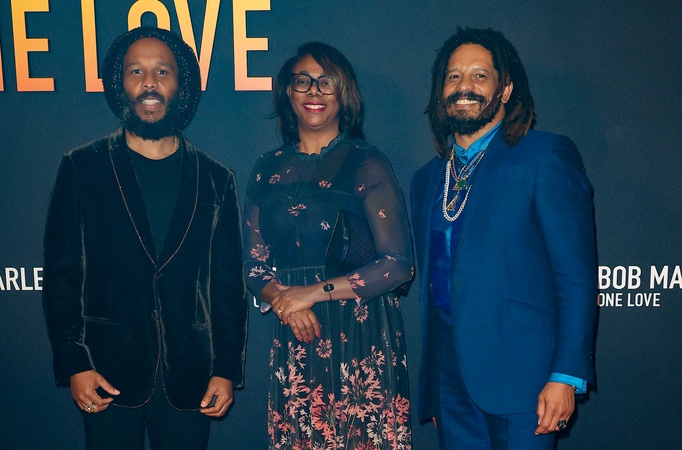 Ziggy Marley, Symone Betton Nayo et Rohan Marley - Première du film "Bob Marley One Love" au Grand Rex à Paris le 1 fevrier 2024. © Coadic Guirec/Bestimage Premiere of the film "Bob Marley One Love” at the Grand Rex in Paris on February 1, 2024.
