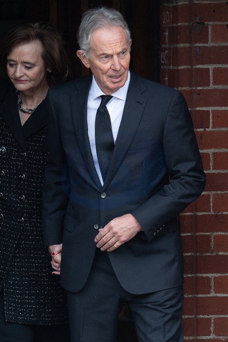 Former Prime Minister Tony Blair and wife Cherie Blair at Derek Draper's funeral service at Church of St Mary The Virgin, Primrose Hill, London, England, UK on Friday 2 February, 2024., Credit:Justin Ng / Avalon