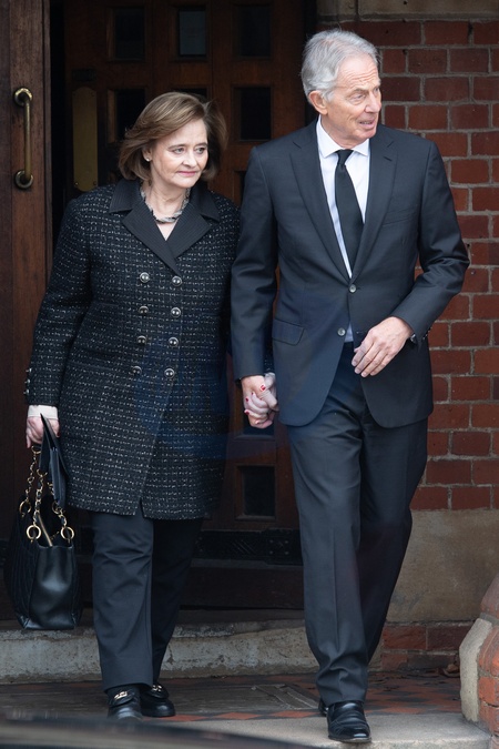 Former Prime Minister Tony Blair and wife Cherie Blair at Derek Draper's funeral service at Church of St Mary The Virgin, Primrose Hill, London, England, UK on Friday 2 February, 2024., Credit:Justin Ng / Avalon