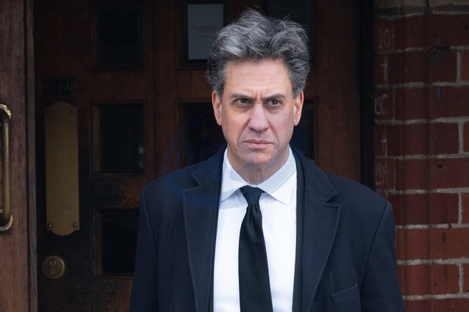 Ed Miliband at Derek Draper's funeral service at Church of St Mary The Virgin, Primrose Hill, London, England, UK on Friday 2 February, 2024., Credit:Justin Ng / Avalon