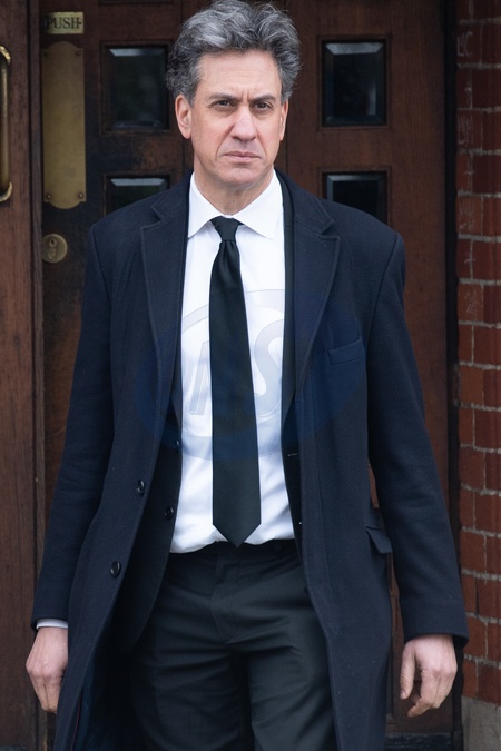 Ed Miliband at Derek Draper's funeral service at Church of St Mary The Virgin, Primrose Hill, London, England, UK on Friday 2 February, 2024., Credit:Justin Ng / Avalon
