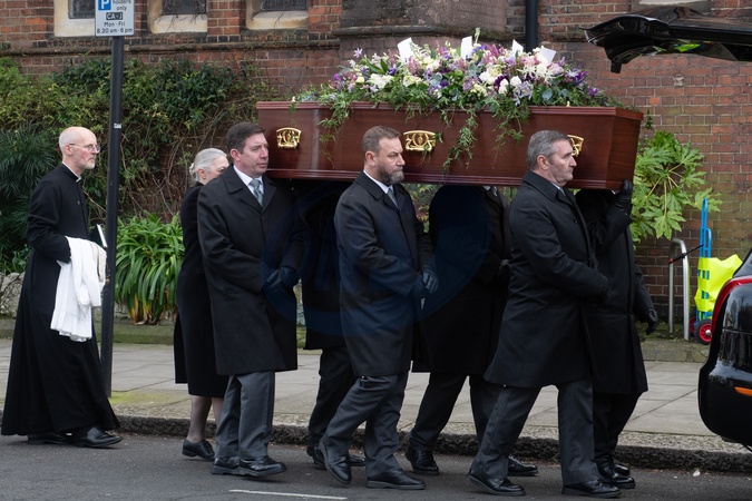 The coffin of Derek Draper is placed into a hearse at his funeral service at Church of St Mary The Virgin, Primrose Hill, London, England, UK on Friday 2 February, 2024., Credit:Justin Ng / Avalon