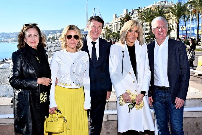 Anne Barrère, Vice-présidente de la Fondation Hôpitaux de Paris-Hôpitaux de France, Laura Tenoudji Estrosi, son mari Christian Estrosi, le maire de Nice, la Première dame française, Brigitte Macron (présidente de la Fondation Hôpitaux de Paris-Hôpitaux de France), et le sélectionneur de l'équipe de France de football, Didier Deschamps (parrain de l'opération Pièces Jaunes), durant la clôture de l'édition 2024 de la 35eme Opération Pièces Jaunes à Nice, au kiosque à musique du jardin Albert 1er, le 2 février 2024. Cette collecte de fonds "Pièces Jaunes" est destinée à améliorer la vie des enfants hospitalisés. © Bruno Bebert/Bestimage Closing of the ‘Pièces Jaunes' event in Nice, France, le 3 février 2024.