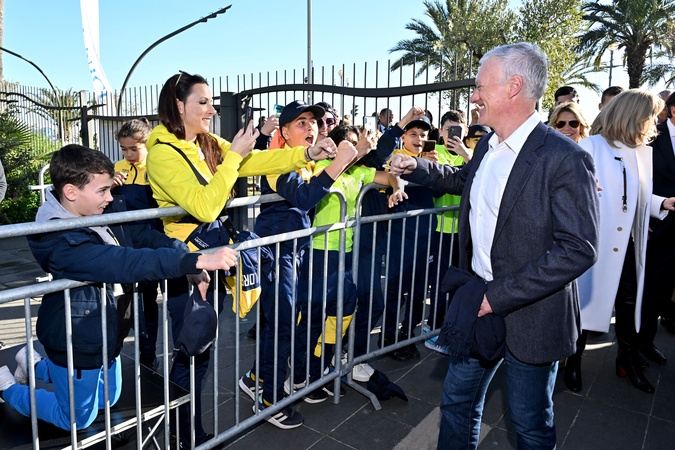 Le sélectionneur de l'équipe de France de football, Didier Deschamps (parrain de l'opération Pièces Jaunes), et la Première dame française, Brigitte Macron (présidente de la Fondation Hôpitaux de Paris-Hôpitaux de France), durant la clôture de l'édition 2024 de la 35eme Opération Pièces Jaunes à Nice, au kiosque à musique du jardin Albert 1er, le 2 février 2024. Cette collecte de fonds "Pièces Jaunes" est destinée à améliorer la vie des enfants hospitalisés. © Bruno Bebert/Bestimage Closing of the ‘Pièces Jaunes' event in Nice, France, le 3 février 2024.
