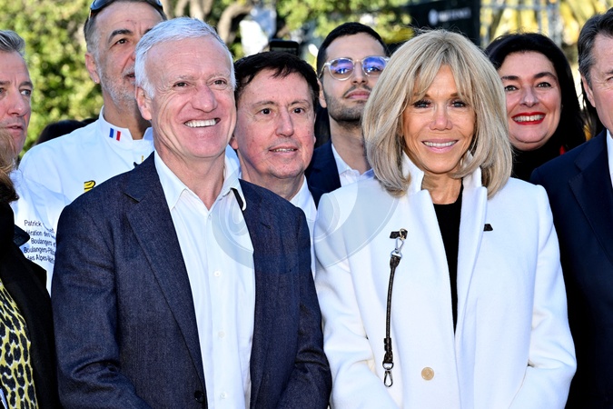 Le sélectionneur de l'équipe de France de football, Didier Deschamps (parrain de l'opération Pièces Jaunes), et la Première dame française, Brigitte Macron (présidente de la Fondation Hôpitaux de Paris-Hôpitaux de France), durant la clôture de l'édition 2024 de la 35eme Opération Pièces Jaunes à Nice, au kiosque à musique du jardin Albert 1er, le 2 février 2024. Cette collecte de fonds "Pièces Jaunes" est destinée à améliorer la vie des enfants hospitalisés. © Bruno Bebert/Bestimage Closing of the ‘Pièces Jaunes' event in Nice, France, le 3 février 2024.
