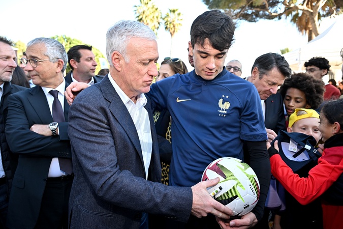 Le sélectionneur de l'équipe de France de football, Didier Deschamps (parrain de l'opération Pièces Jaunes), durant la clôture de l'édition 2024 de la 35eme Opération Pièces Jaunes à Nice, au kiosque à musique du jardin Albert 1er, le 2 février 2024. Cette collecte de fonds "Pièces Jaunes" est destinée à améliorer la vie des enfants hospitalisés. © Bruno Bebert/Bestimage Closing of the ‘Pièces Jaunes' event in Nice, France, le 3 février 2024.