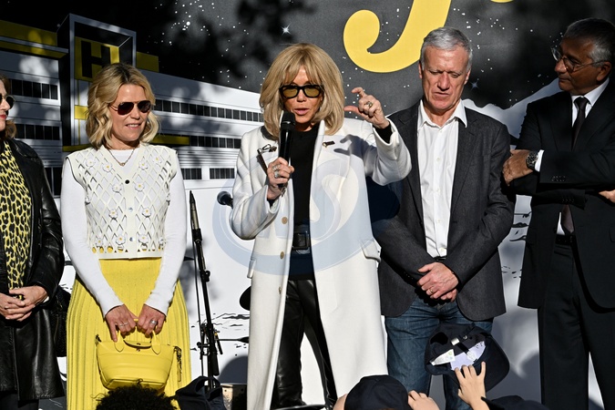 Laura Tenoudji Estrosi, la Première dame française, Brigitte Macron (présidente de la Fondation Hôpitaux de Paris-Hôpitaux de France), et le sélectionneur de l'équipe de France de football, Didier Deschamps (parrain de l'opération Pièces Jaunes), durant la clôture de l'édition 2024 de la 35eme Opération Pièces Jaunes à Nice, au kiosque à musique du jardin Albert 1er, le 2 février 2024. Cette collecte de fonds "Pièces Jaunes" est destinée à améliorer la vie des enfants hospitalisés. © Bruno Bebert/Bestimage Closing of the ‘Pièces Jaunes' event in Nice, France, le 3 février 2024.
