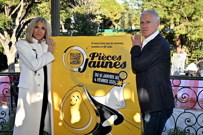 La Première dame française, Brigitte Macron (présidente de la Fondation Hôpitaux de Paris-Hôpitaux de France), et le sélectionneur de l'équipe de France de football, Didier Deschamps (parrain de l'opération Pièces Jaunes), durant la clôture de l'édition 2024 de la 35eme Opération Pièces Jaunes à Nice, au kiosque à musique du jardin Albert 1er, le 2 février 2024. Cette collecte de fonds "Pièces Jaunes" est destinée à améliorer la vie des enfants hospitalisés. © Bruno Bebert/Bestimage Closing of the ‘Pièces Jaunes' event in Nice, France, le 3 février 2024.