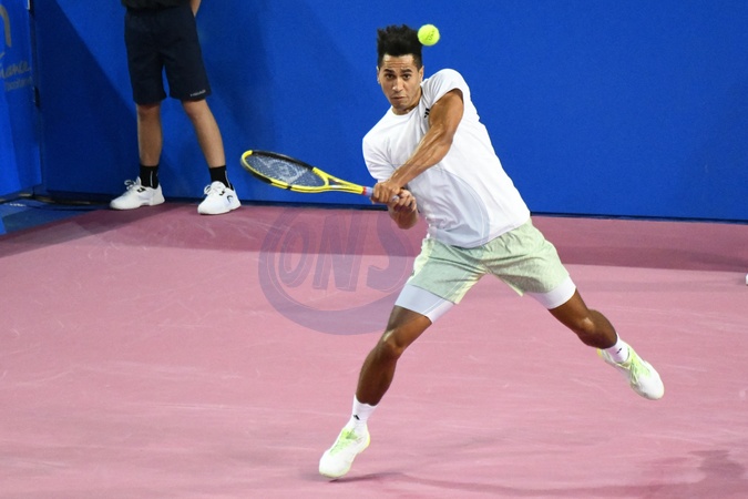 Tournoi de tennis Open Sud de France à Montpellier le 2 février 2024. © Valentina Claret / Panoramic / Bestimage MONTPELLIER, FRANCE - FEBRUARY 2 : Michael MMOH (USA) during the 1/4 final of the ATP 250 Open Sud de France tournament vs. Holger RUNE (DEN) in Montpellier, France on February 2nd, 2024.