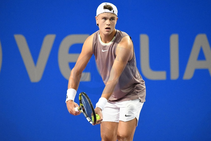 Tournoi de tennis Open Sud de France à Montpellier le 2 février 2024. © Valentina Claret / Panoramic / Bestimage MONTPELLIER, FRANCE - FEBRUARY 2 : Michael MMOH (USA) during the 1/4 final of the ATP 250 Open Sud de France tournament vs. Holger RUNE (DEN) in Montpellier, France on February 2nd, 2024.