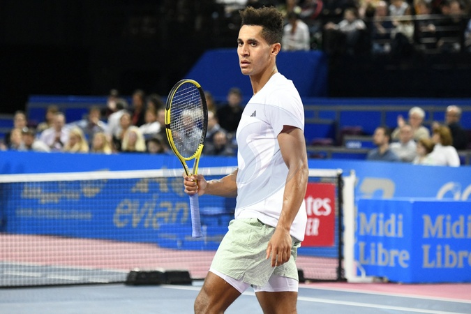 Tournoi de tennis Open Sud de France à Montpellier le 2 février 2024. © Valentina Claret / Panoramic / Bestimage MONTPELLIER, FRANCE - FEBRUARY 2 : Michael MMOH (USA) celebration during the 1/4 final of the ATP 250 Open Sud de France tournament vs. Holger RUNE (DEN) in Montpellier, France on February 2nd, 2024.