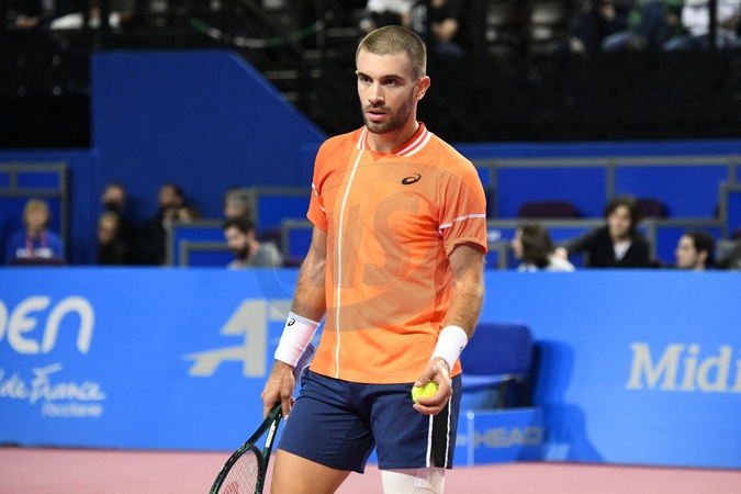 Tournoi de tennis Open Sud de France à Montpellier le 2 février 2024. © Valentina Claret / Panoramic / Bestimage MONTPELLIER, FRANCE - FEBRUARY 2 : Borna CORIC (CRO) during the 1/4 final of the ATP 250 Open Sud de France tournament vs. Flavio COBOLLI (ITA) in Montpellier, France on February 2nd, 2024.