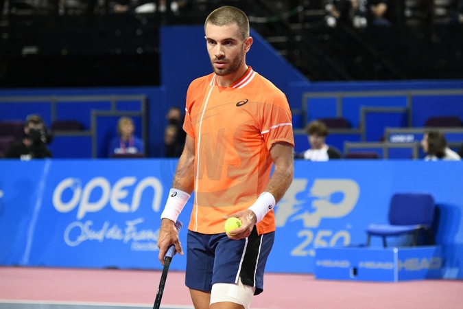 Tournoi de tennis Open Sud de France à Montpellier le 2 février 2024. © Valentina Claret / Panoramic / Bestimage MONTPELLIER, FRANCE - FEBRUARY 2 : Borna CORIC (CRO) during the 1/4 final of the ATP 250 Open Sud de France tournament vs. Flavio COBOLLI (ITA) in Montpellier, France on February 2nd, 2024.