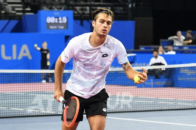 Tournoi de tennis Open Sud de France à Montpellier le 2 février 2024. © Valentina Claret / Panoramic / Bestimage MONTPELLIER, FRANCE - FEBRUARY 2 : Flavio COBOLLI (ITA) during the 1/4 final of the ATP 250 Open Sud de France tournament vs. Borna CORIC (CRO) in Montpellier, France on February 2nd, 2024.
