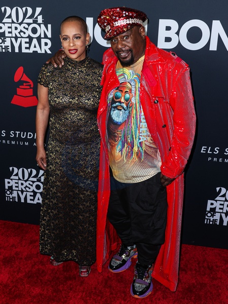 LOS ANGELES, CALIFORNIA, USA - FEBRUARY 02: Stephanie Lynn Clinton and husband George Clinton arrive at the 2024 MusiCares Person of the Year Honoring Jon Bon Jovi held at the Los Angeles Convention Center on February 2, 2024 in Los Angeles, California, United States., Credit:Xavier Collin / Avalon