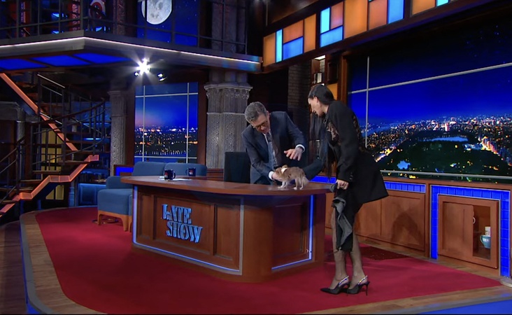 Demi Moore montre son minuscule animal de compagnie son Chihuahua au The Late Show