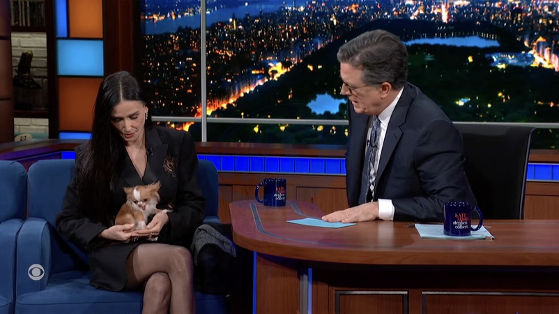 Demi Moore pokazuje swojego małego zwierzaka Chihuahua w programie The Late Show