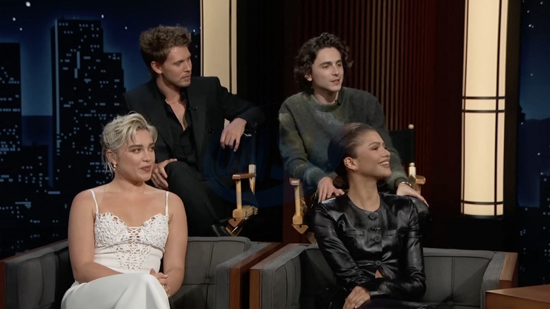 Pictures MUST credit: ABC The cast of new sci-fi sequel Dune : Part Two revealed secrets about themselves in a game of true or false. And it was revealed that 28-year-old British actress Florence Pugh's mother got high with rapper Snoop Dog at the Oscars. And that US starlet Zendaya , 27, had to repeat a year in kindergarten because she got behind on reading and writing. Also Elvis movie heartthrob Austin Butler, 32, got talent scouted at a country fair. Finally Wonka actor Timothee Chalamet , 28, has a rapping alter ego known as Little Timmy True. The game came about on the Jimmy Kimmel US talk show because he wanted to know how much the cast had learned about each other shooting the Dune film, set on a futuristic sand-covered planet. Kimmel explained:” You guys spend a lot of time together I thought maybe we'd play this game.” He handed out paddles with the word "true” on one side and "false” on the other, along with a picture of the jaws of a giant sand worm which appears in the film. Picture supplied by JLPPA