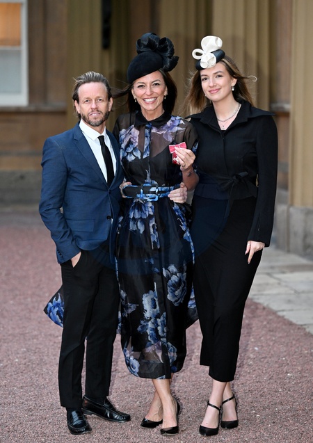 Davina McCall, MBE, For services to Broadcasting - Pictured with daughter Holly and partner Michael Douglas. Investiture at Buckingham Palace, London, UK. January 31, 2024., Credit:Tony Kershaw / SWNS / Avalon