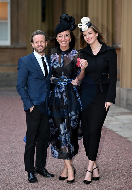 Davina McCall, MBE, For services to Broadcasting - Pictured with daughter Holly and partner Michael Douglas. Investiture at Buckingham Palace, London, UK. January 31, 2024., Credit:Tony Kershaw / SWNS / Avalon