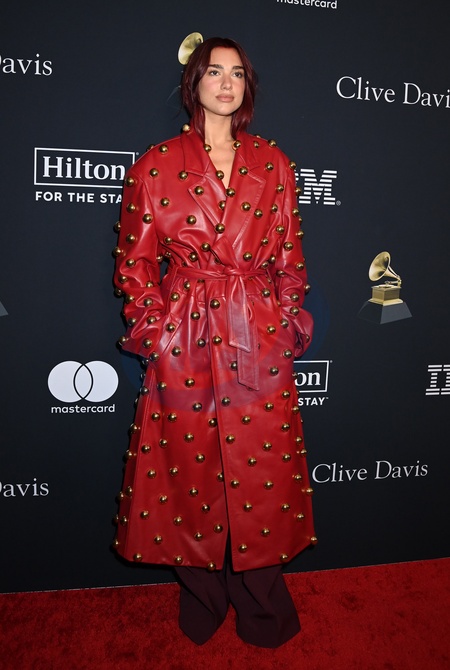 Dua Lipa arriving at the Pre-GRAMMY Gala & GRAMMY Salute To Industry Icons held at the Beverly Hilton Hotel on February 3, 2024 in Beverly Hills, CA.© Tammie Arroyo / AFF-USA.com