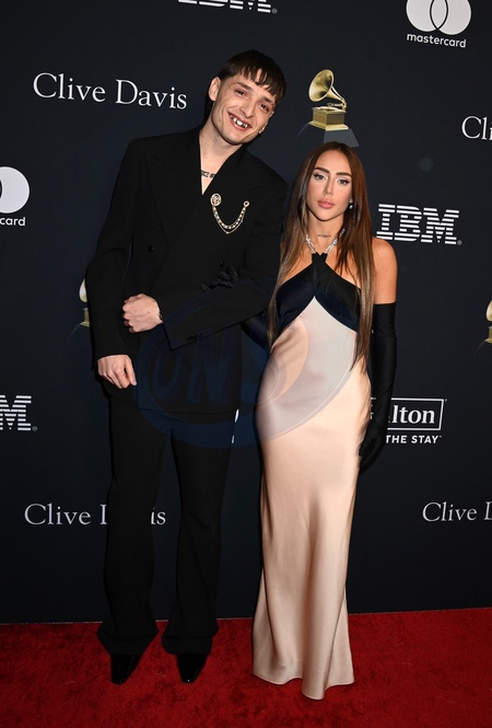 Peso Pluma and Nicki Nicole arriving at the Pre-GRAMMY Gala & GRAMMY Salute To Industry Icons held at the Beverly Hilton Hotel on February 3, 2024 in Beverly Hills, CA.© Tammie Arroyo / AFF-USA.com