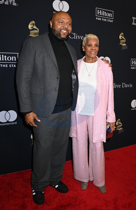 Damon Elliott and Dionne Warwick arriving at the Pre-GRAMMY Gala & GRAMMY Salute To Industry Icons held at the Beverly Hilton Hotel on February 3, 2024 in Beverly Hills, CA.© Tammie Arroyo / AFF-USA.com