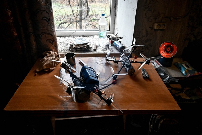ZAPORIZHZHIA REGION, UKRAINE - JANUARY 27, 2024 - FPV drones are placed on the table, Zaporizhzhia region, southeastern Ukraine., Credit:Dmytro Smolienko / Avalon