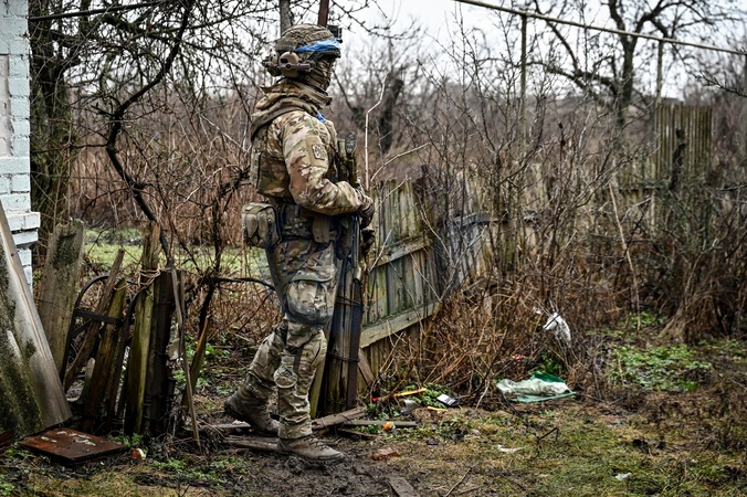 ZAPORIZHZHIA REGION, UKRAINE - JANUARY 27, 2024 - A member of a police unit of FPV pilots stands by a dilapidated fence, Zaporizhzhia region, southeastern Ukraine., Credit:Dmytro Smolienko / Avalon