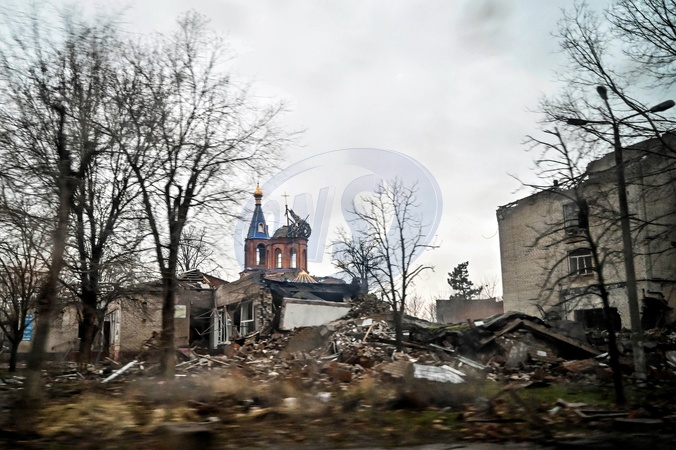 ORIKHIV, UKRAINE - JANUARY 27, 2024 - The Church of the Protection of the Theotokos lies in ruins as a result of Russian shelling in frontline Orikhiv, Zaporizhzhia region, southeastern Ukraine., Credit:Dmytro Smolienko / Avalon
