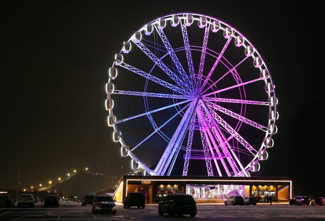 POLIANYTSIA, UKRAINE - FEBRUARY 2, 2024 - The Ferris wheel is pictured at the Bukovel ski resort, Polianytsia village, Nadvirna district, Ivano-Frankivsk region, western Ukraine., Credit:Yurii Rylchuk / Avalon