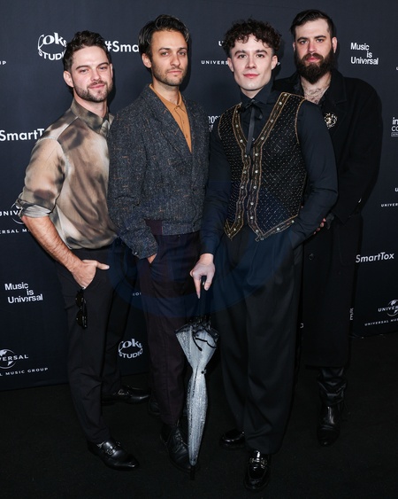 HOLLYWOOD, LOS ANGELES, CALIFORNIA, USA - FEBRUARY 04: Luka Bazulka, Colin Kendrick, Daniel Zuker, Justin Siegal and Chance Taylor of The Scarlet Opera arrive at Universal Music Group's 2024 66th GRAMMY Awards After Party held at nya studios WEST on February 4, 2024 in Hollywood, Los Angeles, California, United States., Credit:Xavier Collin / Avalon