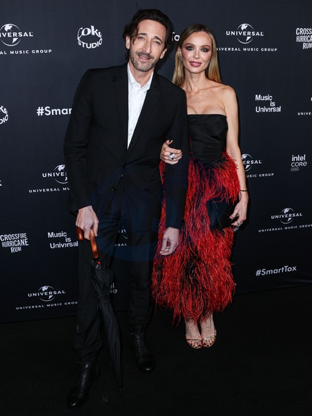 HOLLYWOOD, LOS ANGELES, CALIFORNIA, USA - FEBRUARY 04: Adrien Brody and girlfriend Georgina Chapman arrive at Universal Music Group's 2024 66th GRAMMY Awards After Party held at nya studios WEST on February 4, 2024 in Hollywood, Los Angeles, California, United States., Credit:Xavier Collin / Avalon