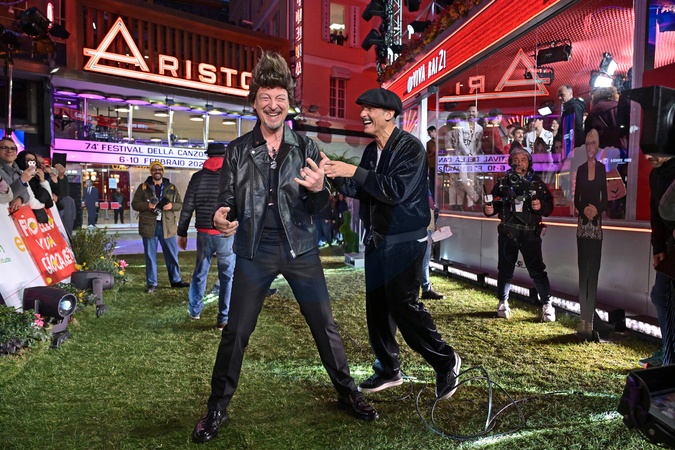 Fiorello and Amadeus in front of Ariston Theater, Credit:Maria Laura Antonelli / Avalon