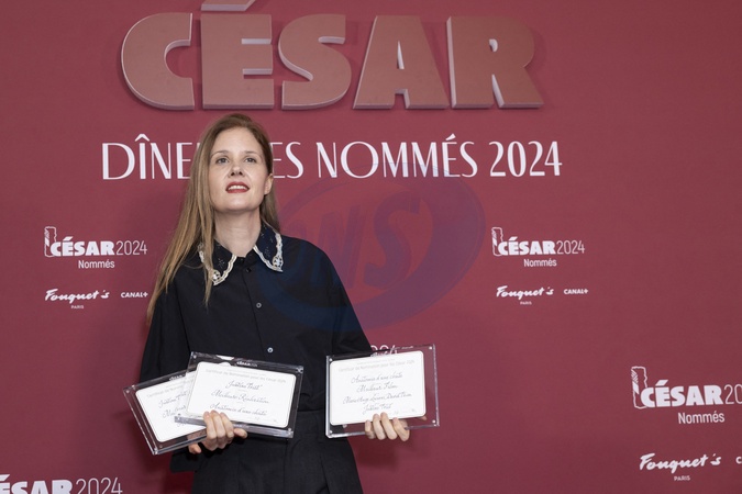 Justine Triet au Photocall des participants au dîner des nommés des César 2024 au Fouquet's Paris le 5 février 2024. © Olivier Borde / Bestimage Photocall of participants at the César 2024 nominees' dinner at Fouquet's Paris on 5 February 2024
