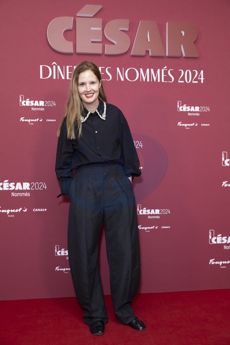 Justine Triet au Photocall des participants au dîner des nommés des César 2024 au Fouquet's Paris le 5 février 2024. © Olivier Borde / Bestimage Photocall of participants at the César 2024 nominees' dinner at Fouquet's Paris on 5 February 2024