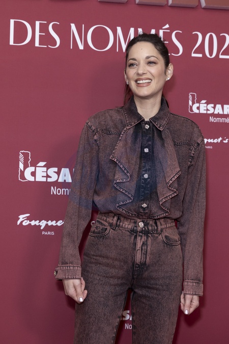 Marion Cotillard au Photocall des participants au dîner des nommés des César 2024 au Fouquet's Paris le 5 février 2024. © Olivier Borde / Bestimage Photocall of participants at the César 2024 nominees' dinner at Fouquet's Paris on 5 February 2024