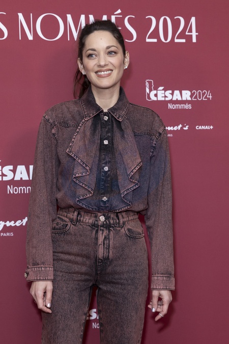 Marion Cotillard au Photocall des participants au dîner des nommés des César 2024 au Fouquet's Paris le 5 février 2024. © Olivier Borde / Bestimage Photocall of participants at the César 2024 nominees' dinner at Fouquet's Paris on 5 February 2024