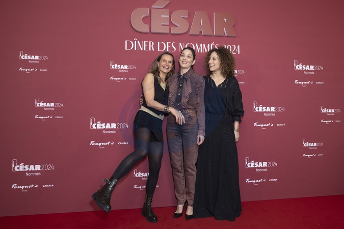 Laetitia Gonzalez, Marion Cotillard et Mona Achache au Photocall des participants au dîner des nommés des César 2024 au Fouquet's Paris le 5 février 2024. © Olivier Borde / Bestimage Photocall of participants at the César 2024 nominees' dinner at Fouquet's Paris on 5 February 2024