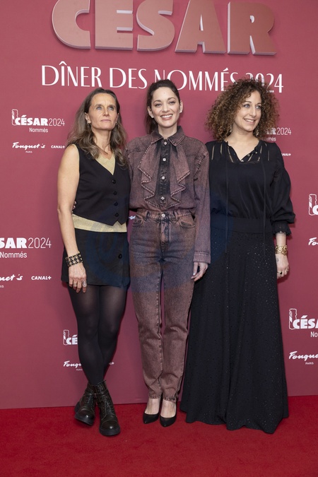 Laetitia Gonzalez, Marion Cotillard et Mona Achache au Photocall des participants au dîner des nommés des César 2024 au Fouquet's Paris le 5 février 2024. © Olivier Borde / Bestimage Photocall of participants at the César 2024 nominees' dinner at Fouquet's Paris on 5 February 2024