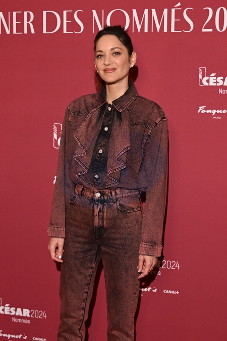 Photocall des participants au dîner des nommés des César 2024 au Fouquet's Paris le 5 février 2024. © Federico Pestellini / Panoramic / Bestimage Marion Cotillard arrives at the Cesar Awards 2024 nominee dinner at Le Fouquet's on february 05, 2024 in Paris, France.
