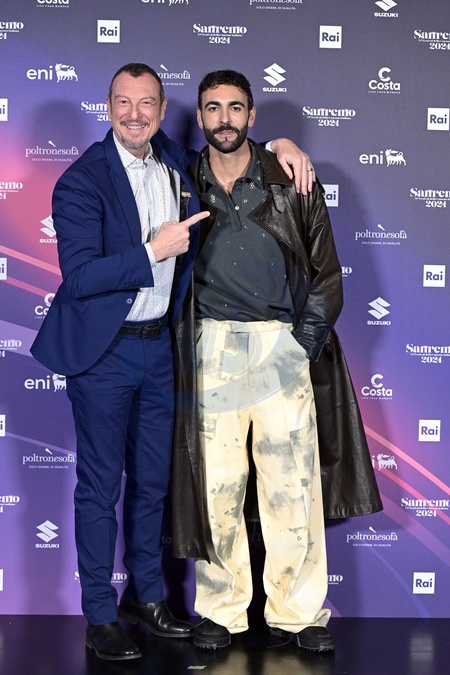 Amadeus, Marco Mengoni attends a photocall during 74th Sanremo Music Festival 2024 , Sanremo, Italy 06 Feb 2023, Credit:Maria Laura Antonelli / Avalon