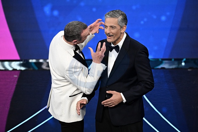 Amadeus and Fiorello during Sanremo Italian Song Festival. Sanremo, Italy, 06 February 2024., Credit:Maria Laura Antonelli / Avalon